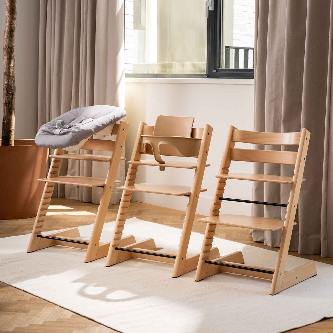 Till de allra yngsta finns ett newborn set, som låter din minsta vara med vid familjens måltider. När ditt barn kan sitta själv, vid ca 6 månader, kan ni med fördel använda Tripp Trapp stolen med ett babyset som består av en bygel och en ryggplatta.