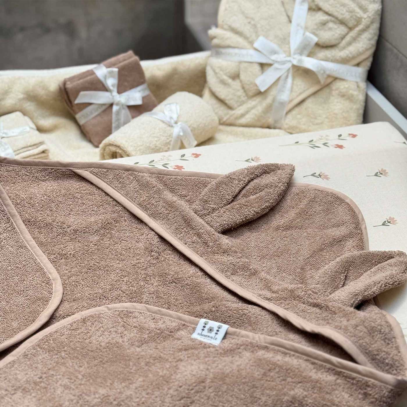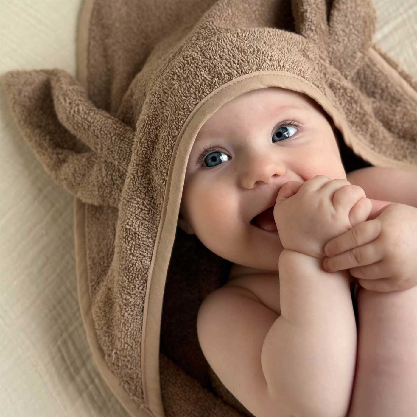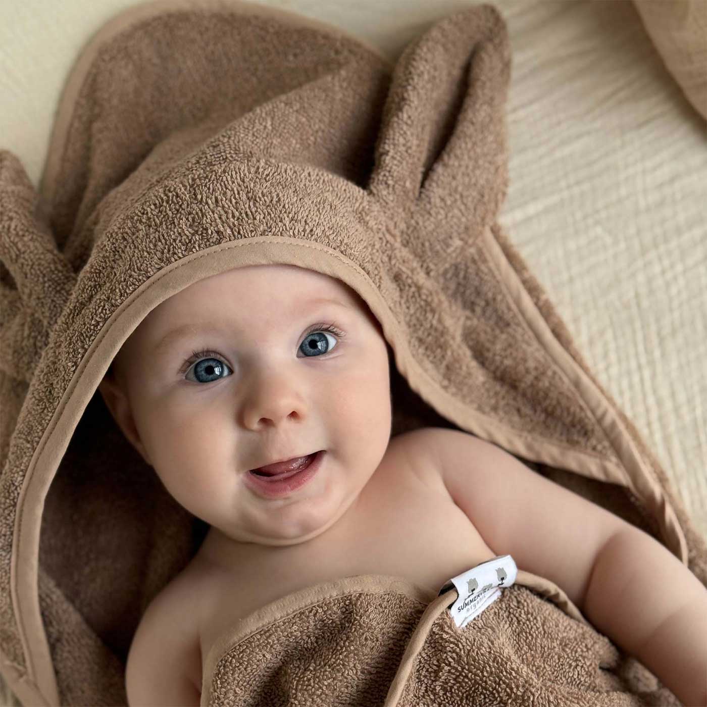 Summerville Badcape Kanin warm taupe GOTS är en mjuk och mysig badcape i ekologisk bomull med huva och söta kaninöron, perfekt att svepa in din bebis i efter badet. Det här blir garanterat en favorit i många badrum framöver!