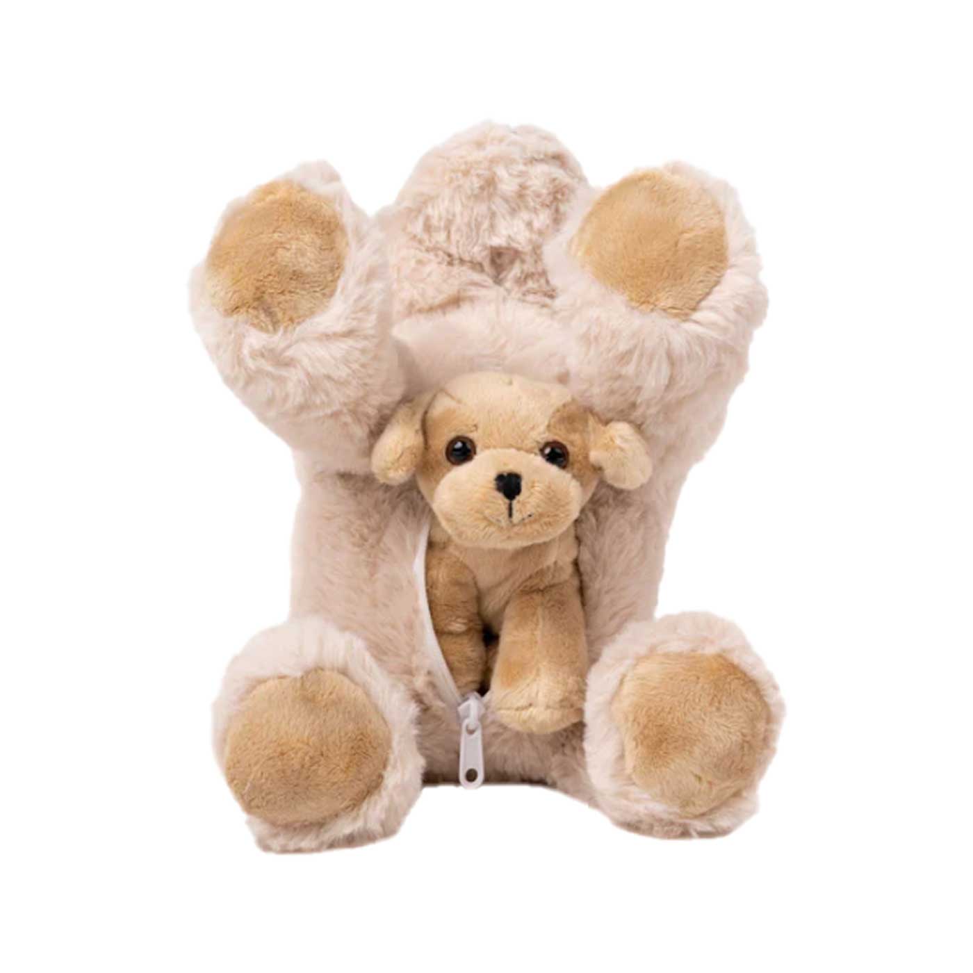Tess med sin lilla valp från Teddykompaniet är ett mjukt och lekfullt gosedjur som bjuder in till både fantasi och mysiga stunder. Den smarta designen gör att barnet kan öppna dragkedjan på Tess mage och plocka ut eller stoppa tillbaka den lilla valpen, vilket skapar en rolig och engagerande lek.