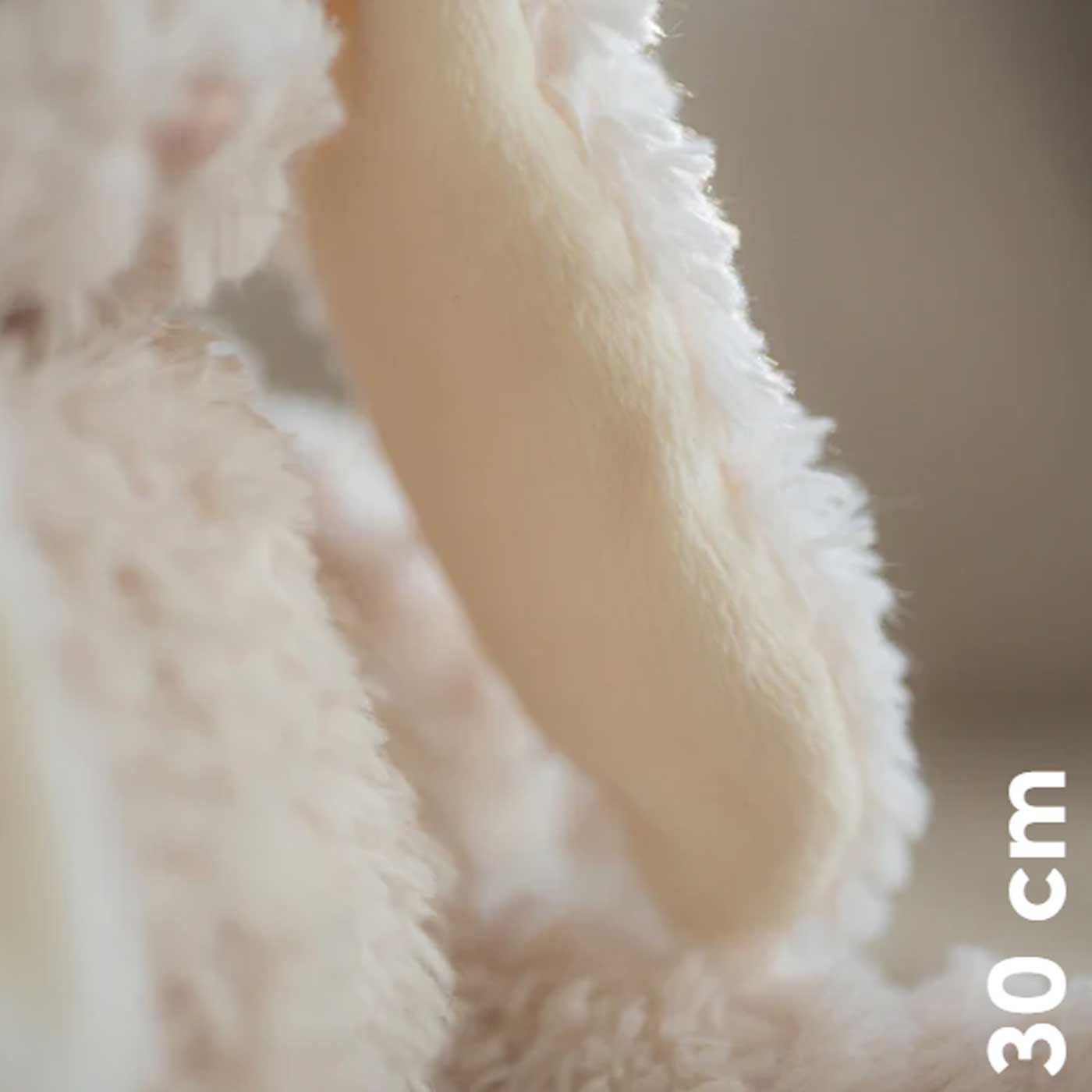 Den fina kombinationen av mjuk kvalitet och tidlös stil gör kaninen lika uppskattad som trygg lekkamrat som en dekorativ detalj i barnrummet. Perfekt som present till födelsedagen, nyfödda eller dop.