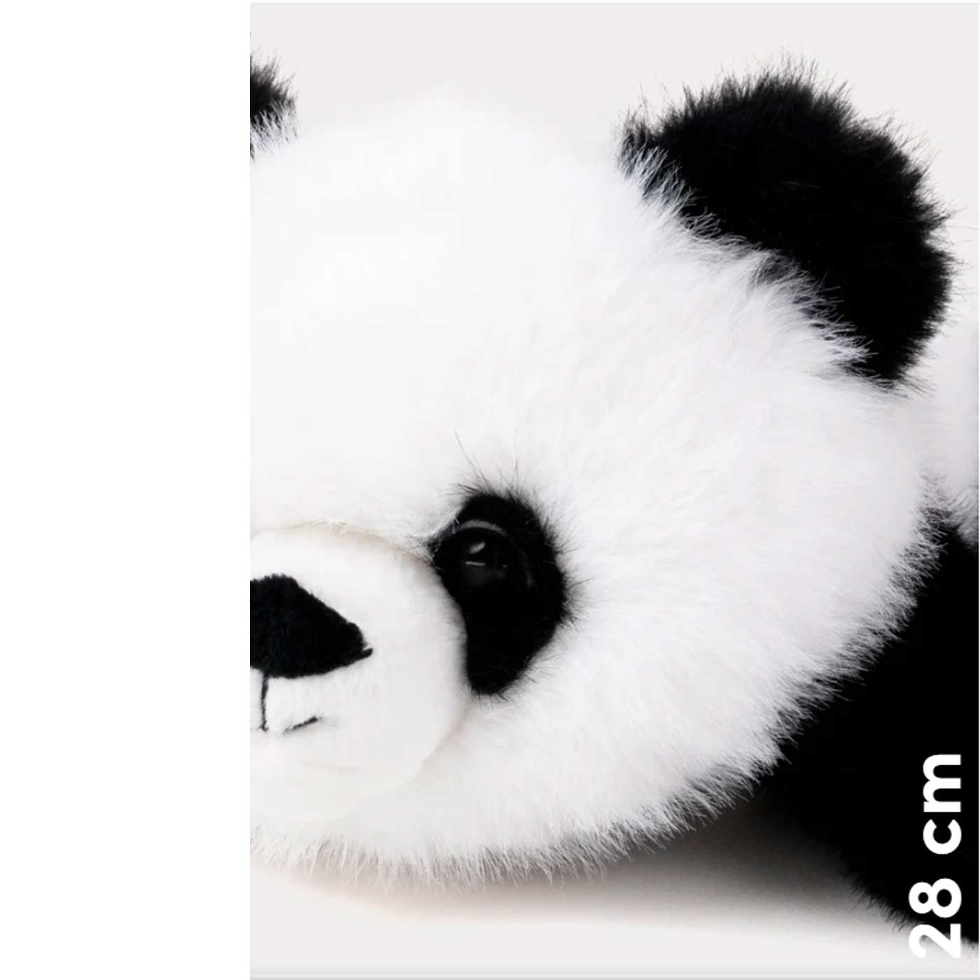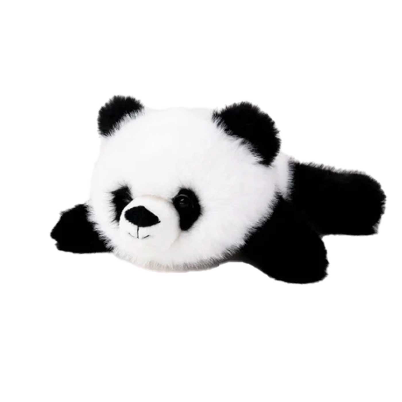 Den lätt tyngda kroppen ger en lugnande och avslappnad känsla, medan den liggande formen gör pandan perfekt att krama, vila med eller ha nära till hands som en trygg kompis genom dagen.