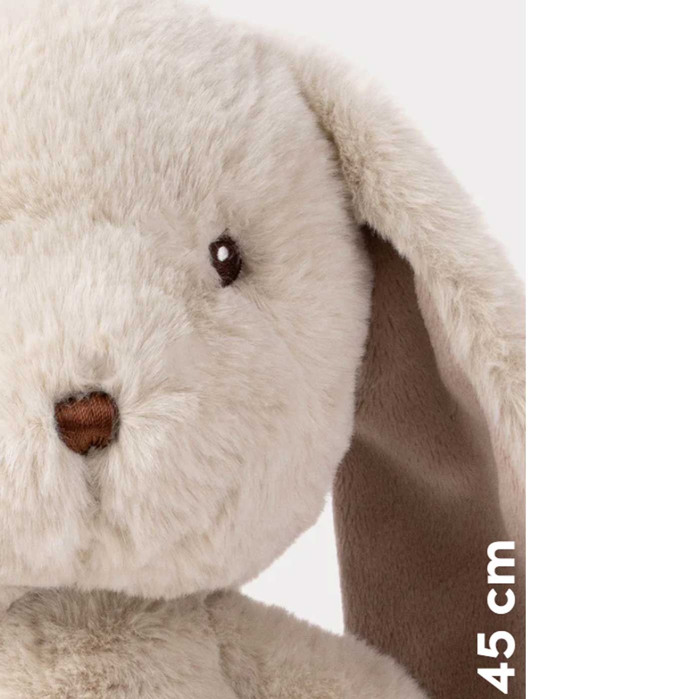 Teddykompaniet Svea Kanin Sand 45 cm är en mjuk vän med beige päls och en söt brun nos. Hon skapar trygghet och mysiga stunder för barnet och är perfekt som present till födelsedagen, nyfödda eller dop. Gosedjuret är tillverkat av Oeko-tex-certifierat material och fyllning i återvunnen plast.