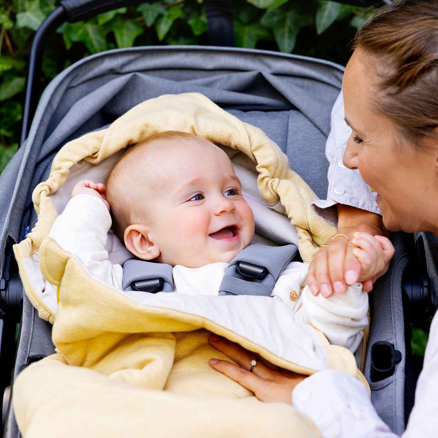Enkel montering i barnvagn och babyskydd