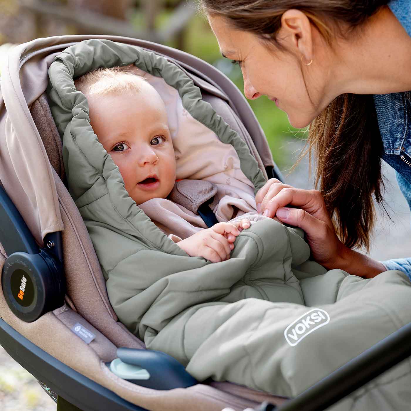 Voksi Move Light är krocktestad tillsammans med babyskydd från BeSafe i rekommenderat bakåtvänt läge. Åkpåsen ersätter ytterkläder och gör det möjligt att bilbältet sitter närmare barnets kropp.