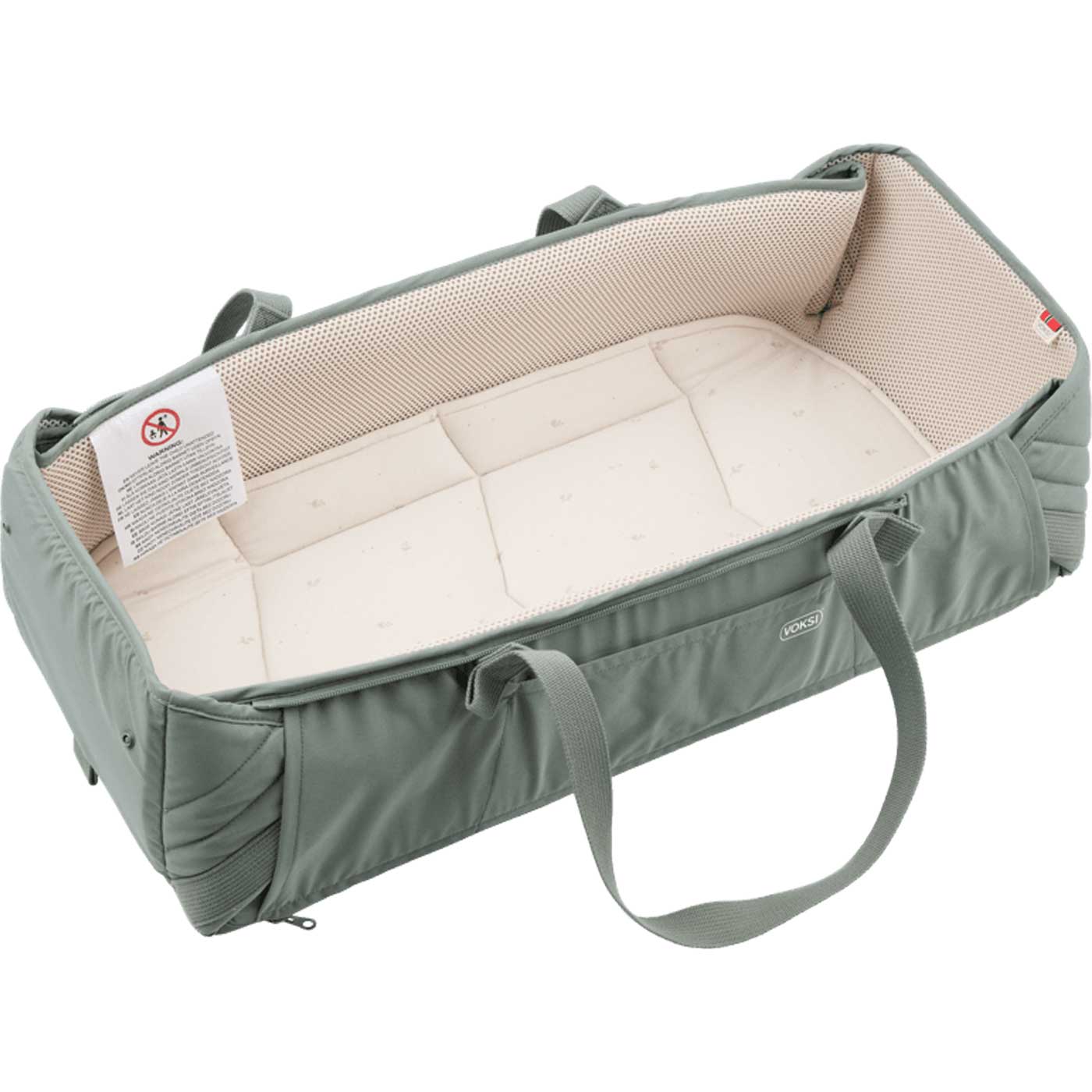 - Placera gärna din Voksi Carry Me inuti en spjälsäng och öppna alla hörn under sovstunden