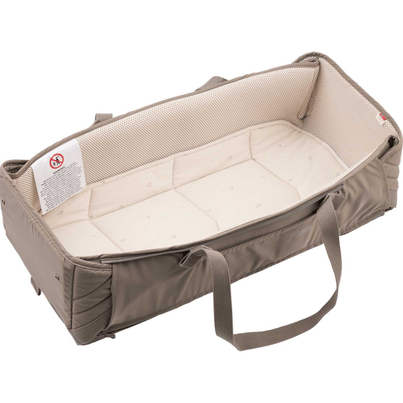 Insidan är tillverkad i luftig 3D-mesh, vilket ger god ventilation och en behaglig sovmiljö oavsett temperatur. Medföljande madrass i 3D-mesh, med överdrag i ekologisk bomull, bidrar till extra komfort och skyddar babyliften vid små olyckor.