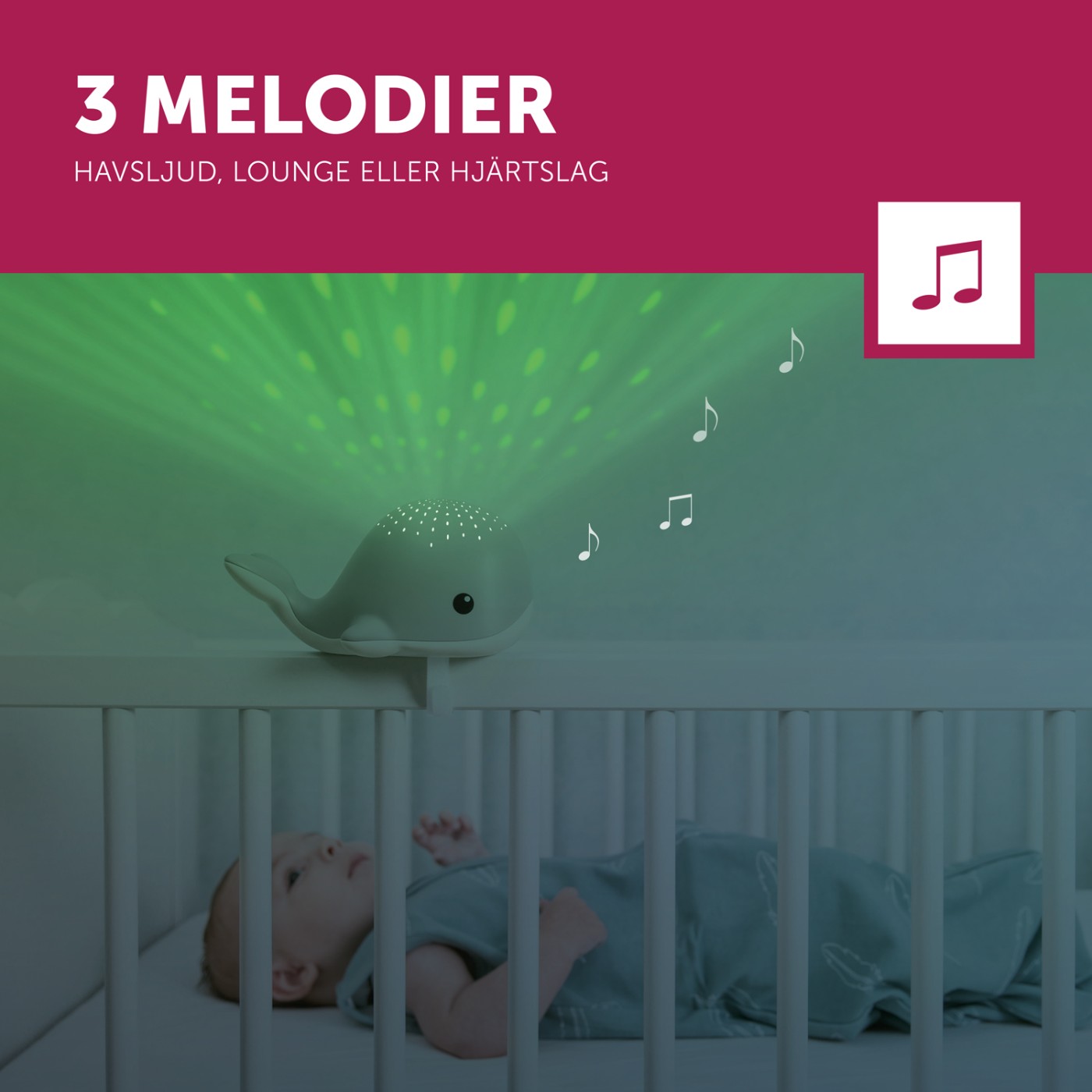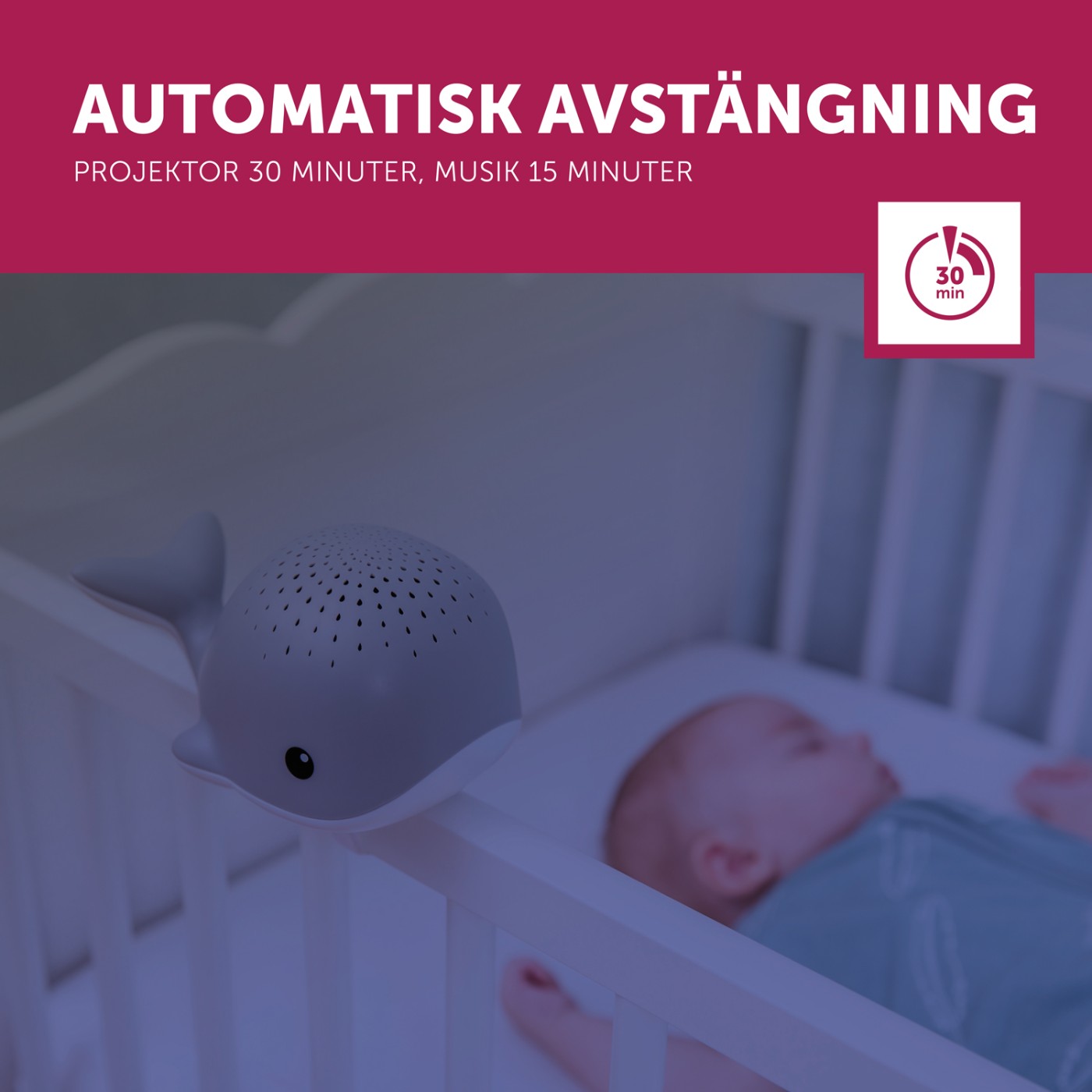 - Gråtsensor som startar projektorn igen om barnet vaknar och börjar gråta