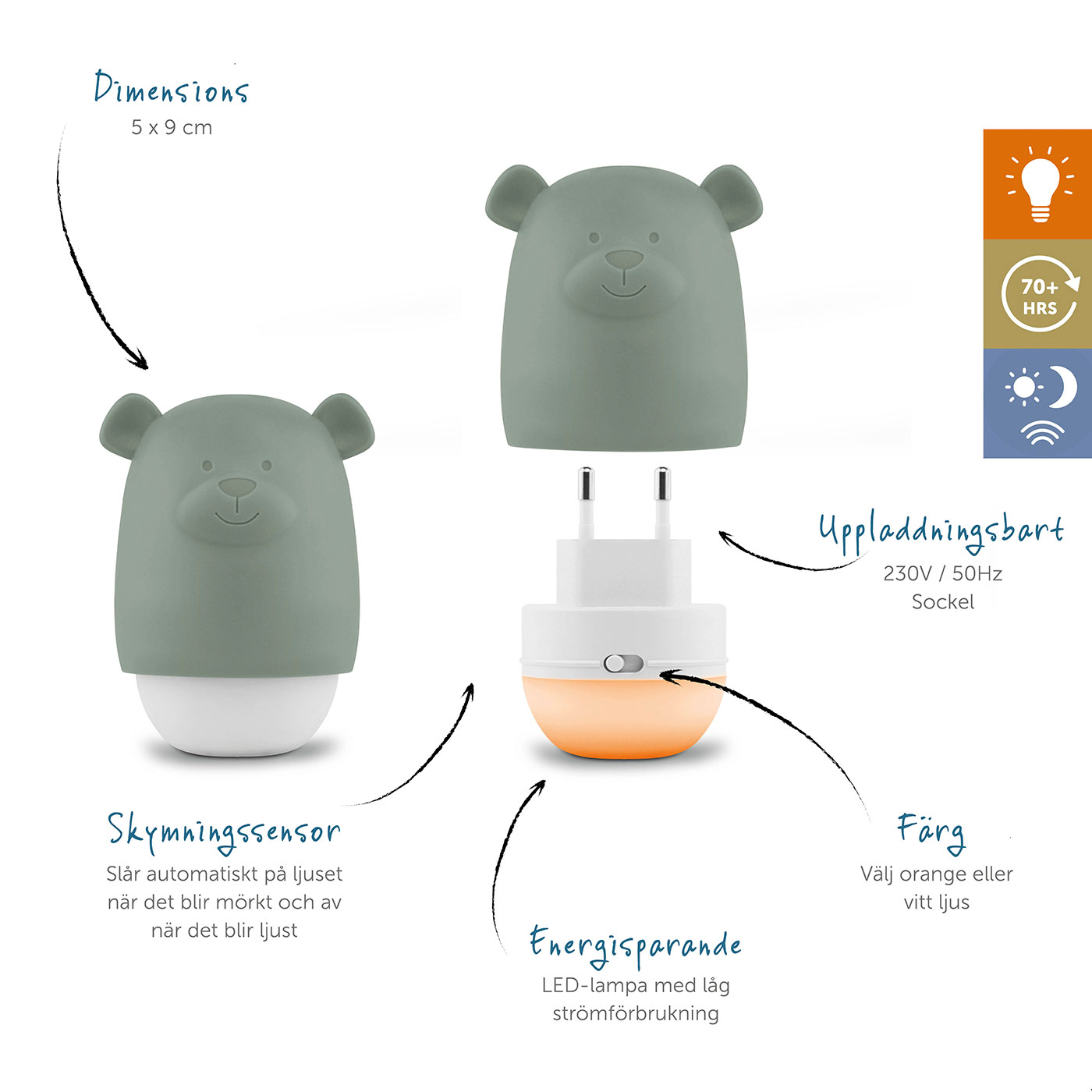 Zazu Nattlampa Benny the Bear Sage är en kompakt och smart nattlampa som ger en trygg och mysig stämning i barnets rum. Den är både stilren och funktionell – perfekt som följeslagare vid läggdags, under kvällslek eller på resan när barnets trygga ljus behövs som bäst.